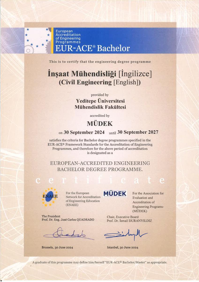 Lisans programımız, Mühendislik Eğitim Programları Değerlendirme ve Akreditasyon Derneği (MÜDEK) tarafından akredite edilmiştir.